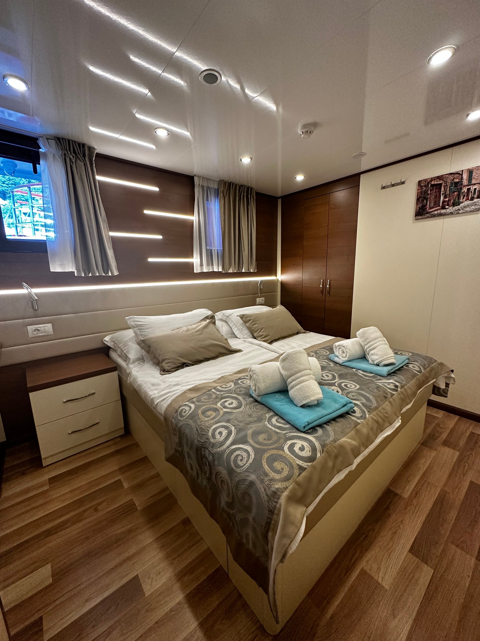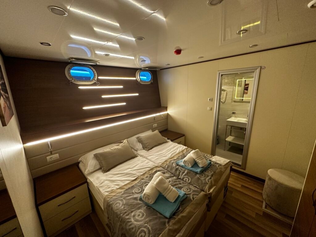- Kvalitný spánok: Kajuty sú moderné, odhlučnené a vybavené všetkým, čo potrebujete k regenerácii po dni plnom zážitkov (vlastná sprcha, WC, A/C).
