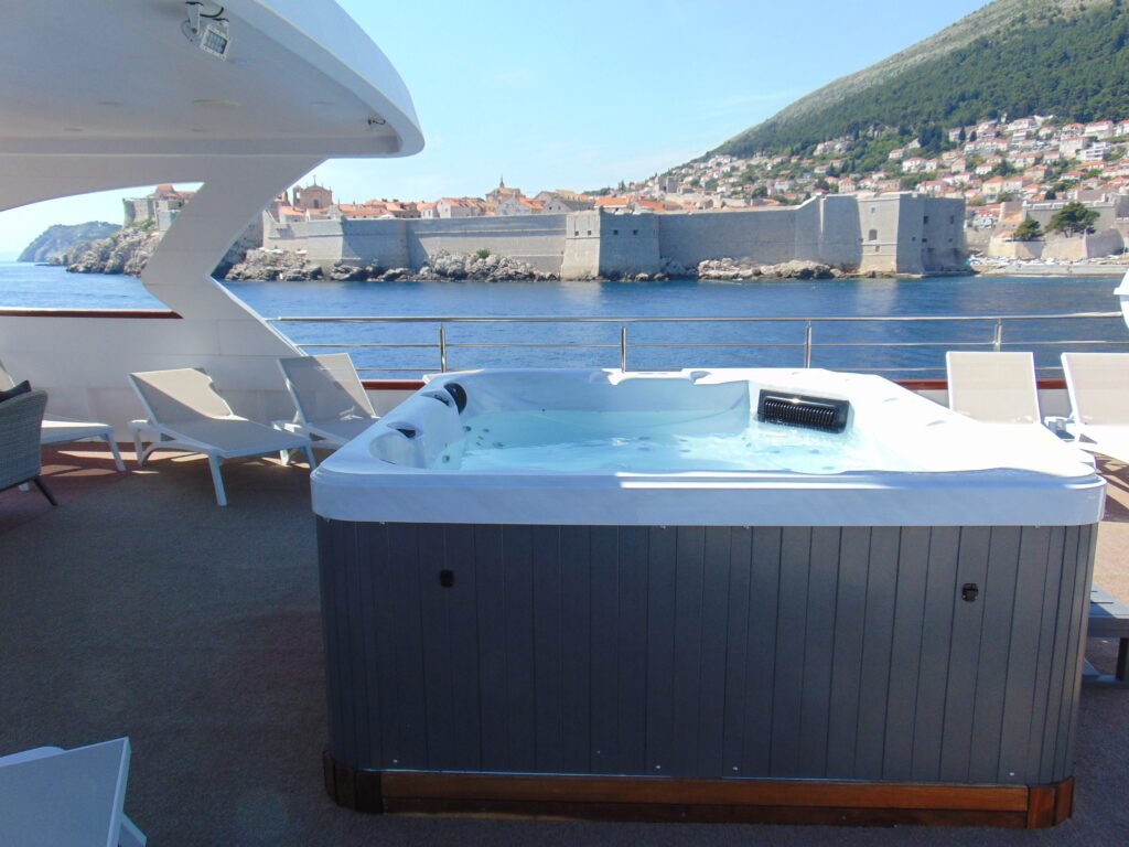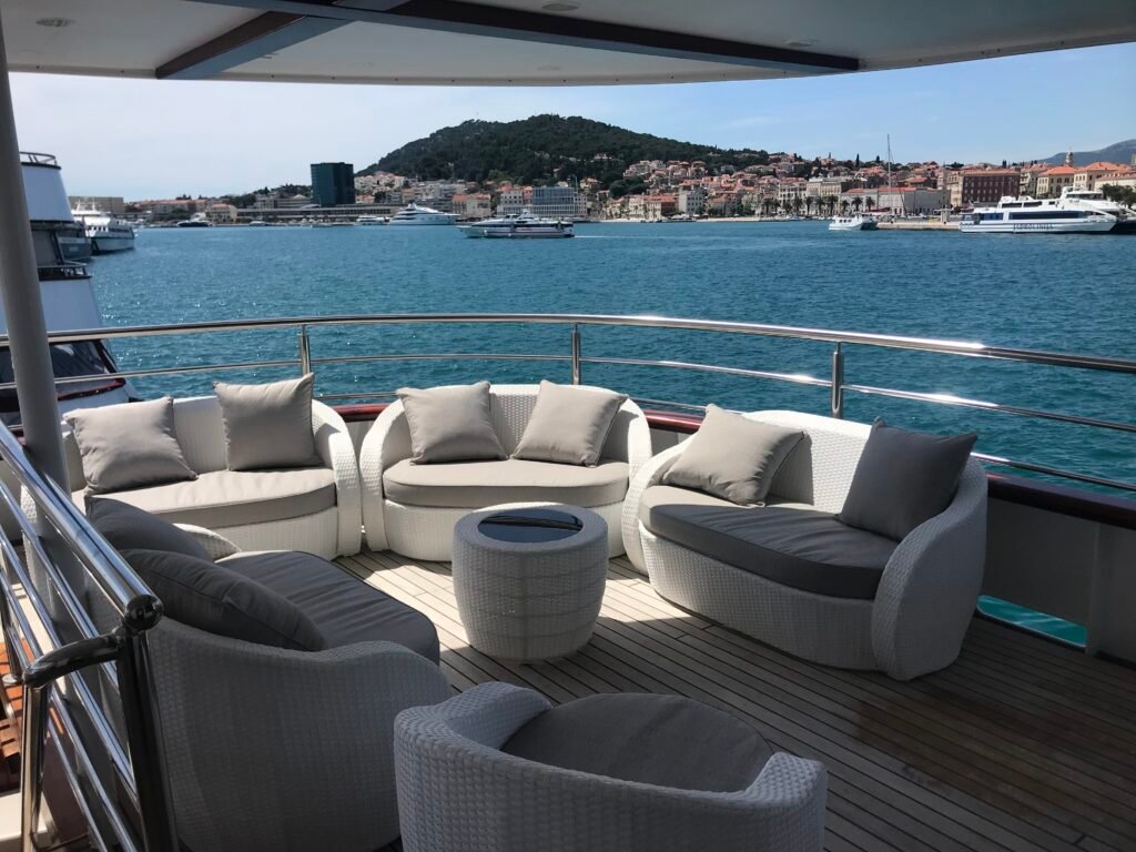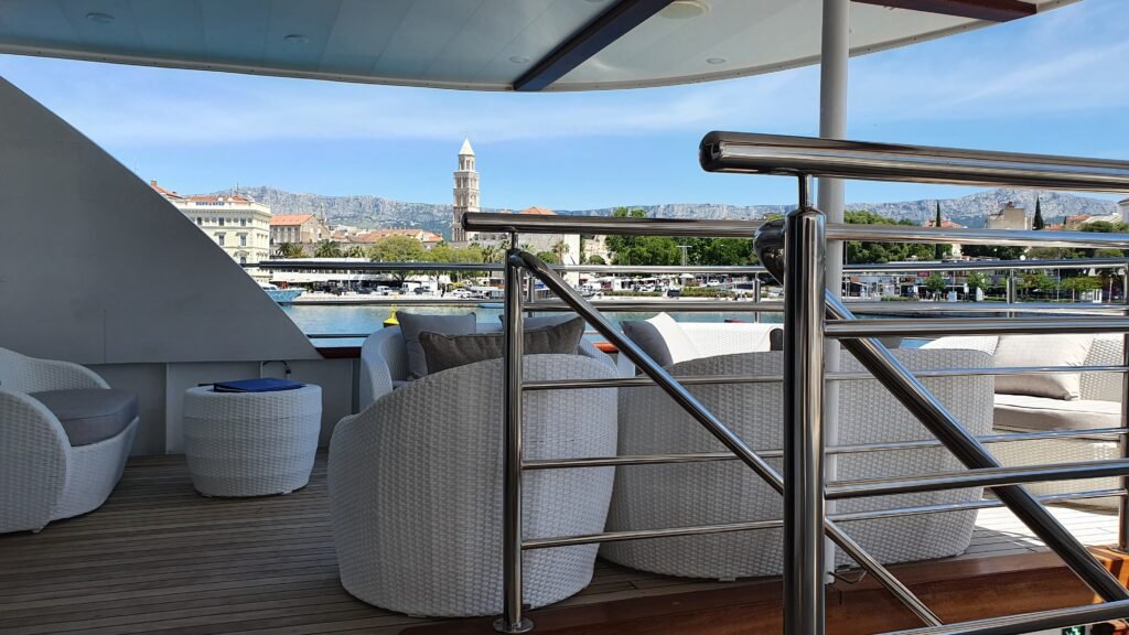 - Slnečná paluba ako centrum diania: Horná paluba so štedrým priestorom a vírivkou je navrhnutá tak, aby si každý našiel svoje miesto na slnku. Či už je to ranná káva pri východe slnka alebo spoločný večerný drink pod hviezdami, tento priestor je srdcom celého spoločenského života na lodi.