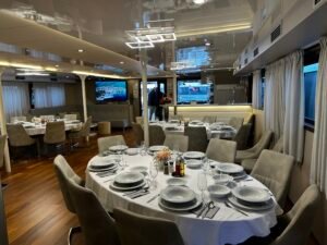 - Krása v detailoch a funkčnosti: Od šikovne navrhnutých kajút až po vkusne prestretý stôl v jedálni – San Spirito dokazuje, že skutočná kvalita sa skrýva v jednoduchosti a čistom prevedení.
